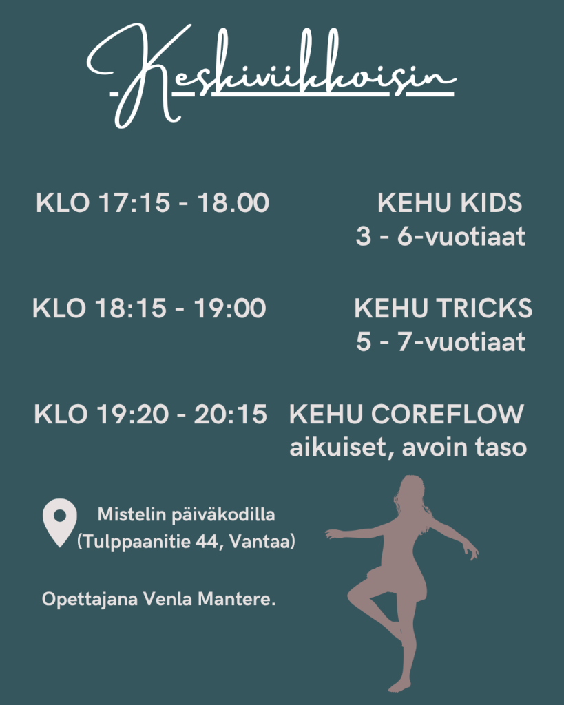 Kesäkausi 2026 toteutetaan touko-kesäkuussa 6 kerran kursseina. Voit tulla mukaan myös vain touko- tai kesäkuulle (3krt).