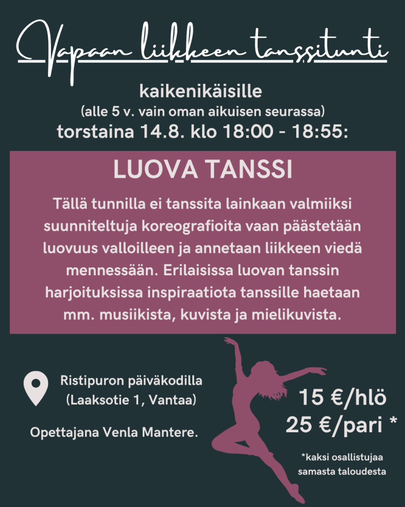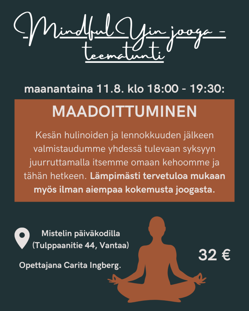 Teematuntien hinnat aikaisille varaajille 29€. Tai varatessasi kerralla paikan kummallekin tunnille yhteishinta 50 €.