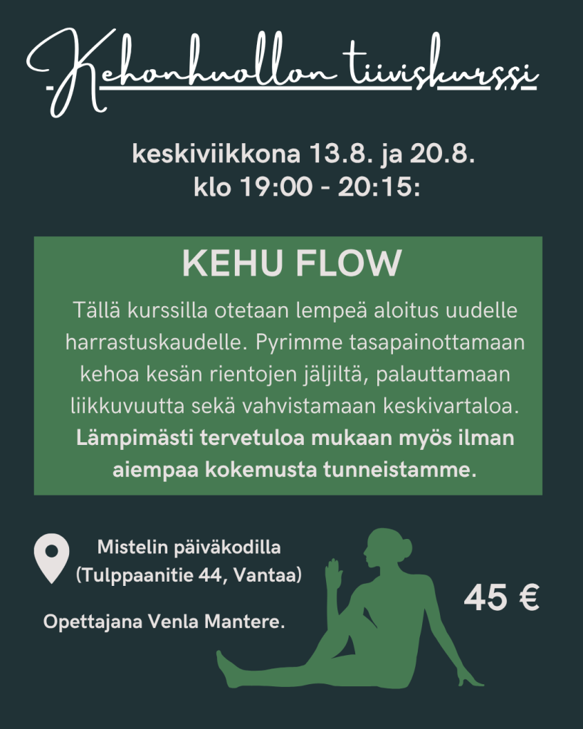 Seuraavat Kehun tiiviskurssit ja teematunnit järjestetään elokuussa ennen syyskauden alkua. Näillä saat mukavan startin uudelle harrastuskaudelle.