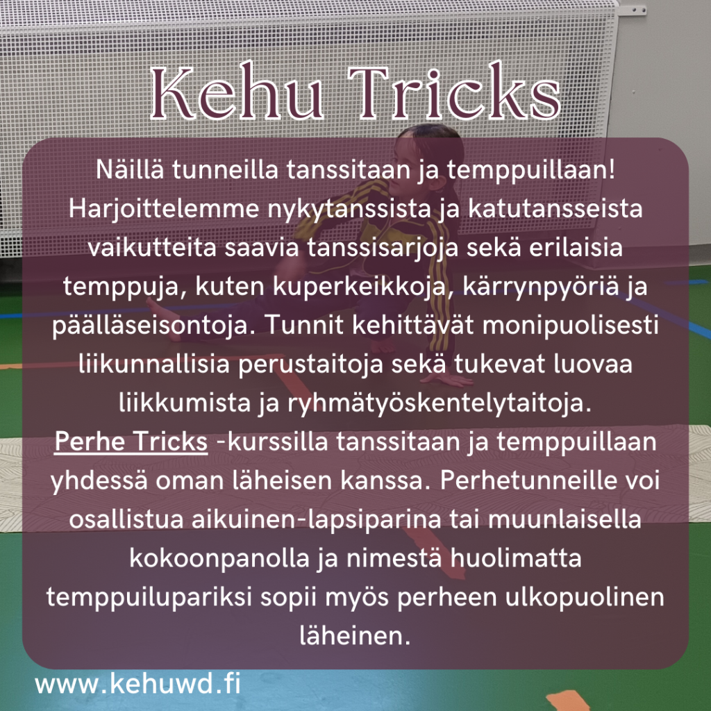Tällä sivulla pääset tutustumaan paremmin tarjoamiimme tunteihin. Valitse mieluinen kurssi ja ilmoittaudu mukaan täällä.